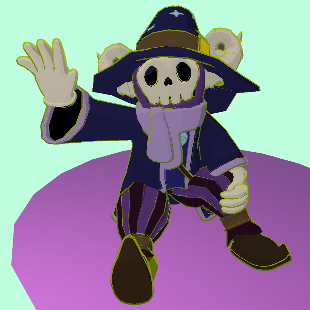 An avatar designed for VRChat of a Cute Lich. Inspired by the Squishable line of lich plush toys.